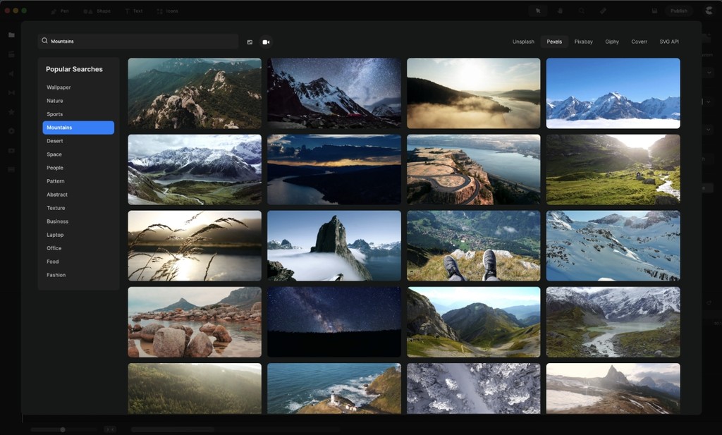 Browse through millions of images, videos, icons & gifs, and import with one click!